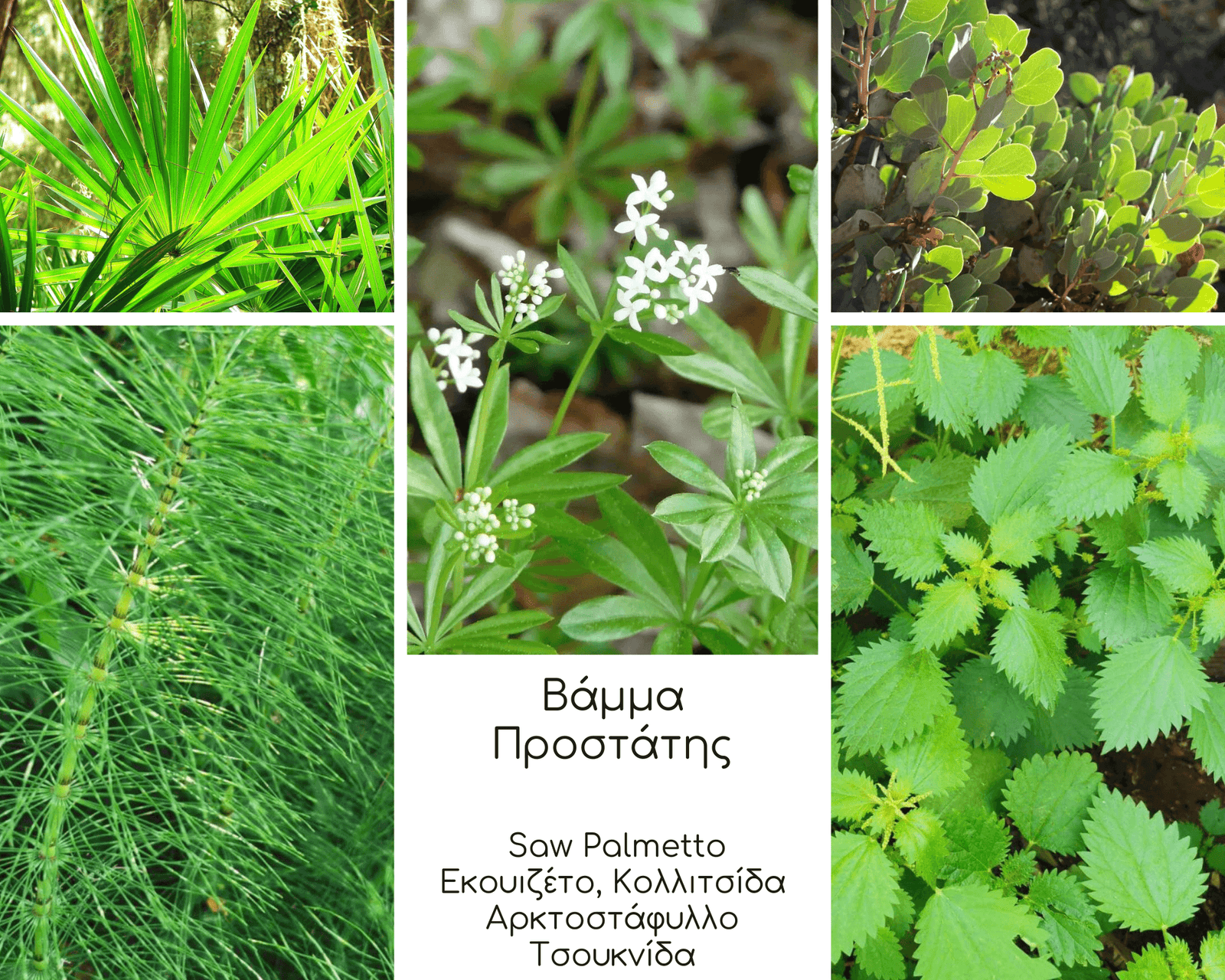 | Είδος | Equisetum arvense, Galium aparine, Urtica dioica, Serenoa repens, Uva ursi |