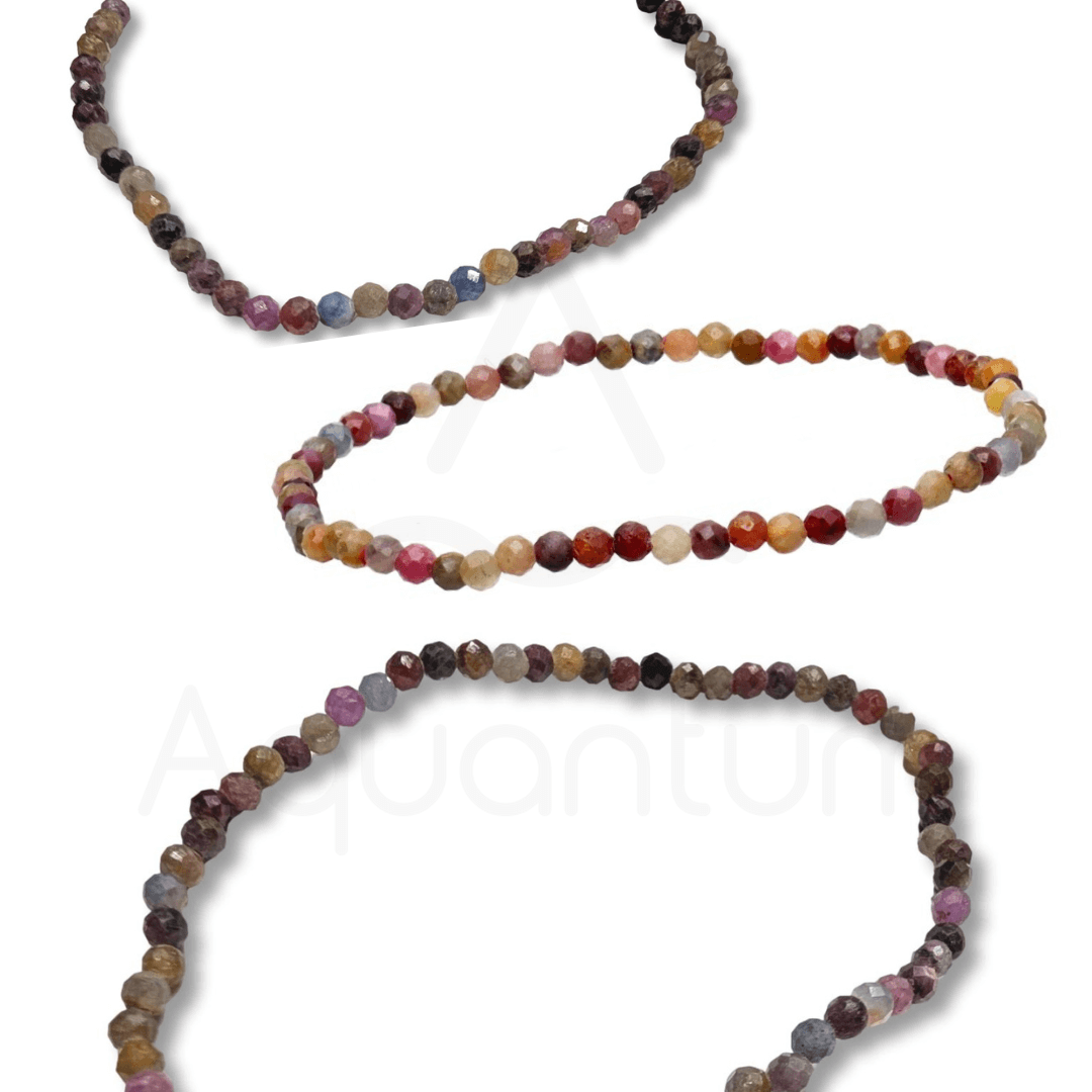 Υπέροχο βραχιόλι εξαιρετικής ποιότητας από Πολύχρωμο Ζαφείρι. Ελαφρύ και εκλεπτυσμένο, αυτό το βραχιόλι κατασκευάζεται από φυσικές πολύχρωμες χάντρες ζαφειριού κομμένες σε πολυεδρικό σχήμα (Faceted) για πρόσθετη λάμψη.